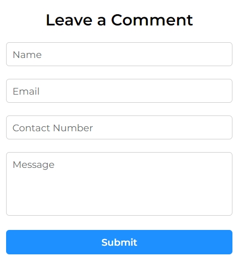 export default function SimpleForm({ fields = fieldsData, action = "", method = "POST", formTitle = "Leave a Comment", id, userFormCardStyle, userTitleStyle, userFormStyle, userInputFieldStyle }) {